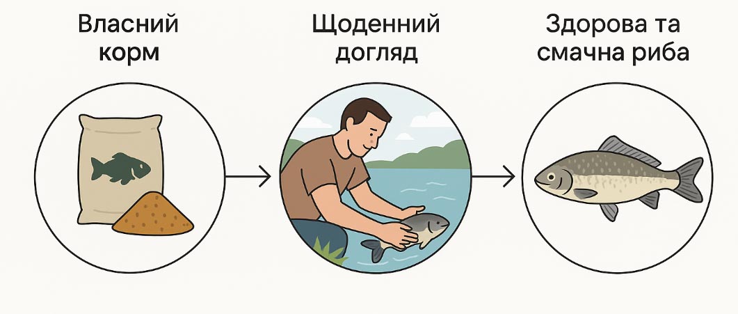 Від власного корму до щоденного догляду. Це гарантує стабільний приріст, здоровʼя риби і чудовий смак.